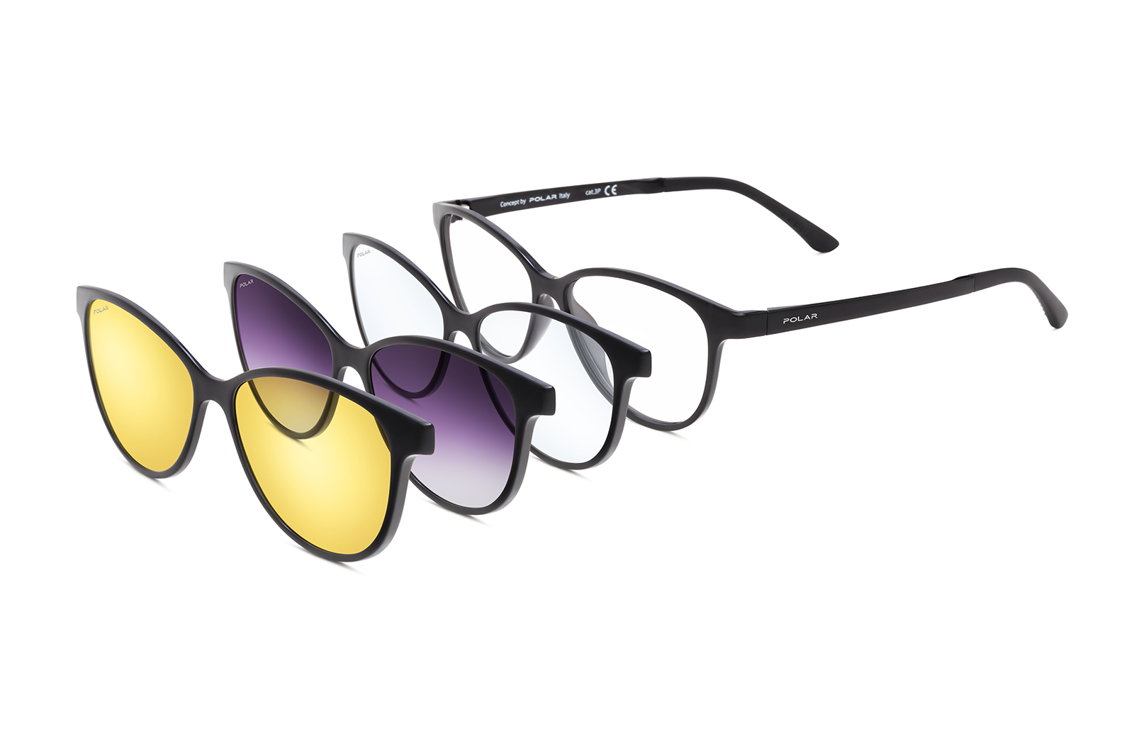 Einstellbare Gummi-Bügelenden + 1 polarisierender Sonnenclip + 1 Blaufilter Clip + 1 Nachtfahr Clip
